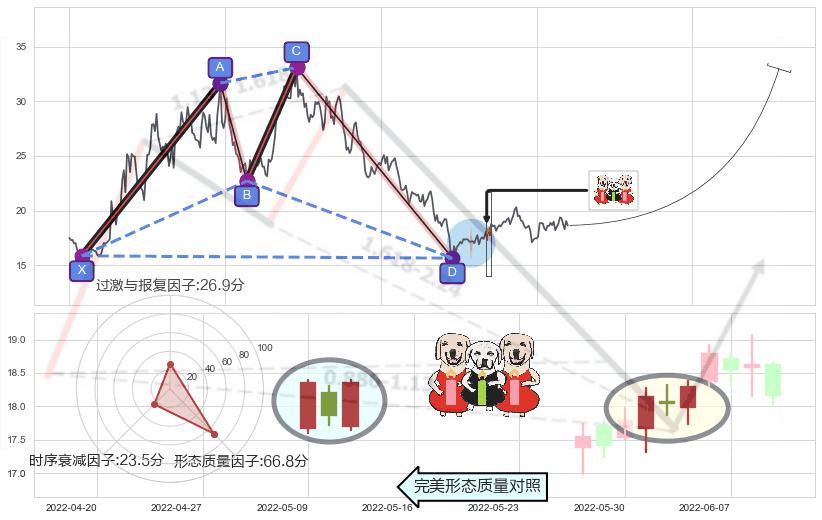 ➢ 双针探底 🔜 谐波鲨鱼d拐点上涨支撑 综合量化分数:50.33 【中性】