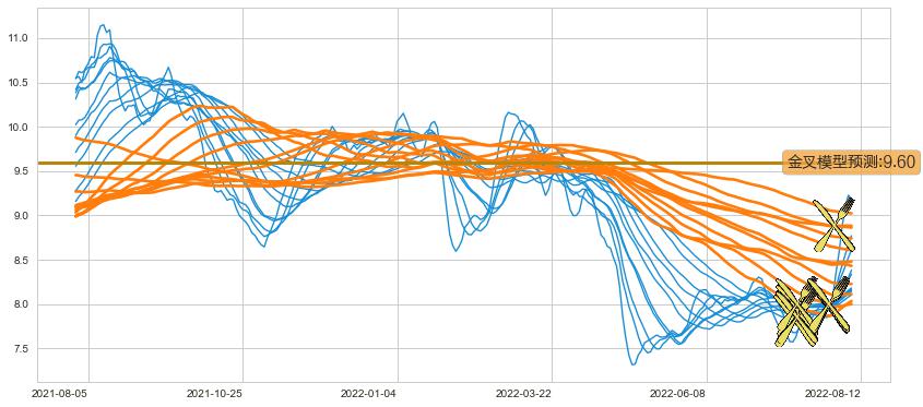 ➣ 180小时均线于(2022-08-04: 8.88)形成【金叉】基于【金叉历史模型】预测金叉后最高波峰价格: 10.63, 金叉后最高价格9.27,尚未达到预测最高波峰价格, 预期继续上涨