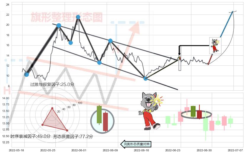 ➢ 【买1】: 激进型 买点 →(2022-06-23: 13.05 )形成突破降⚑旗形【整理】形态