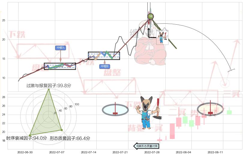 ➢ 🕰 价格走势在2022-08-09至2022-08-09期间形成看跌(高位倒锤头)流星线,残存影响值:-8.13