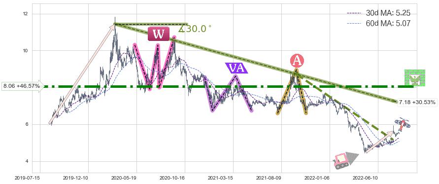 ➢ AI预测: 假定反转如期而至,第❶价格目标位置(2022-11-02, 7.14)