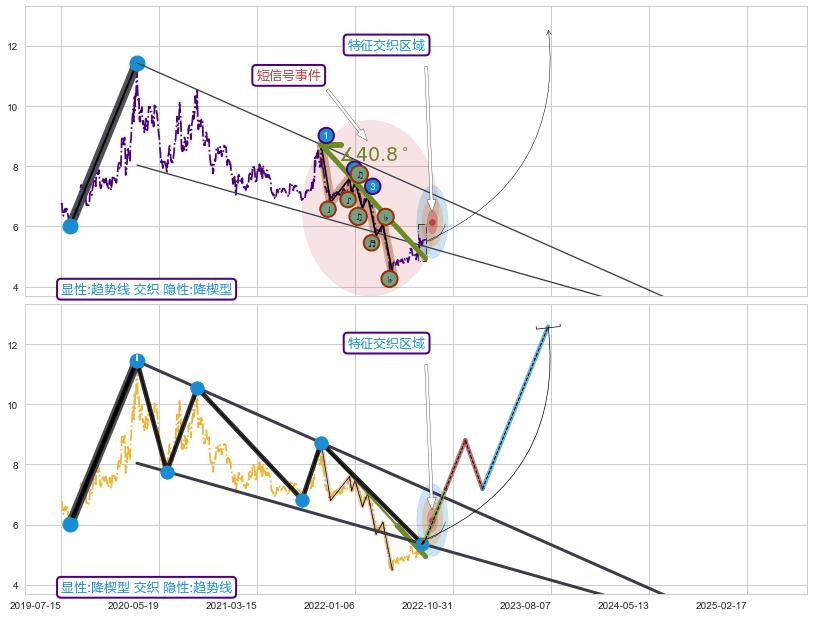 ➢ 趋势线属【短级别信号事件】降楔型属【长级别信号事件】长短周期组合信号事件, 短长事件长度比27.69%