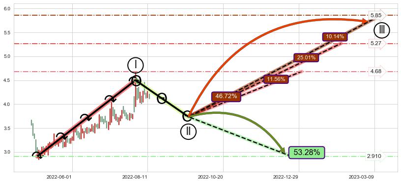 ➢ 循环浪继续向上【最低】位置(2023-01-02, 4.68),匹配聚类样本比例24.75%, 可能性概率11.56%