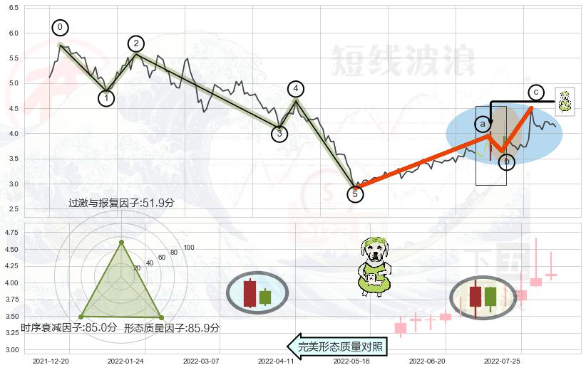 ➢ 下跌身怀六甲 🔜 波浪理论c点反弹终止反转下跌 综合量化分数:46.85 【中性】
