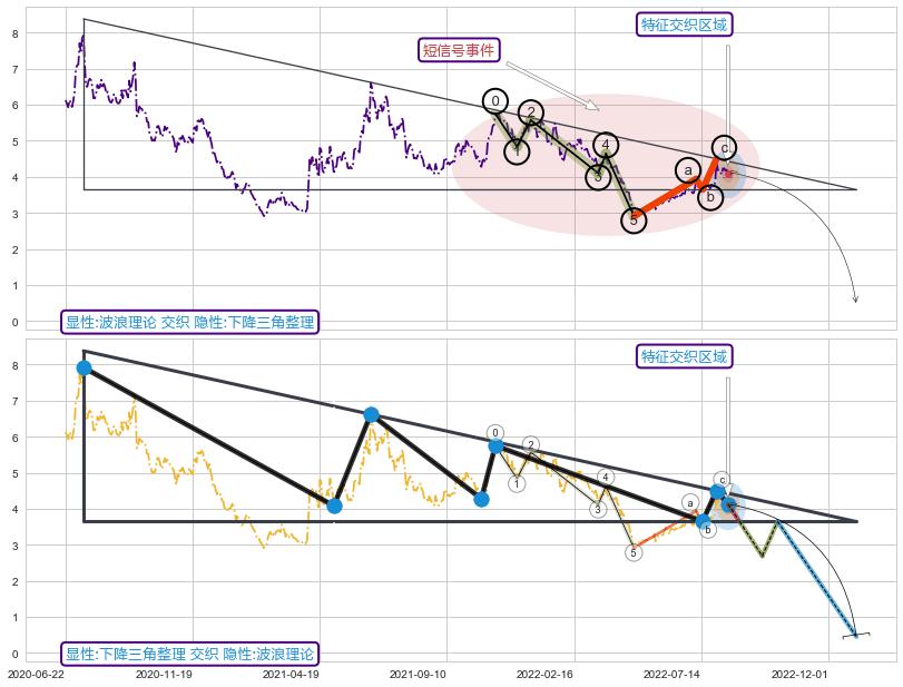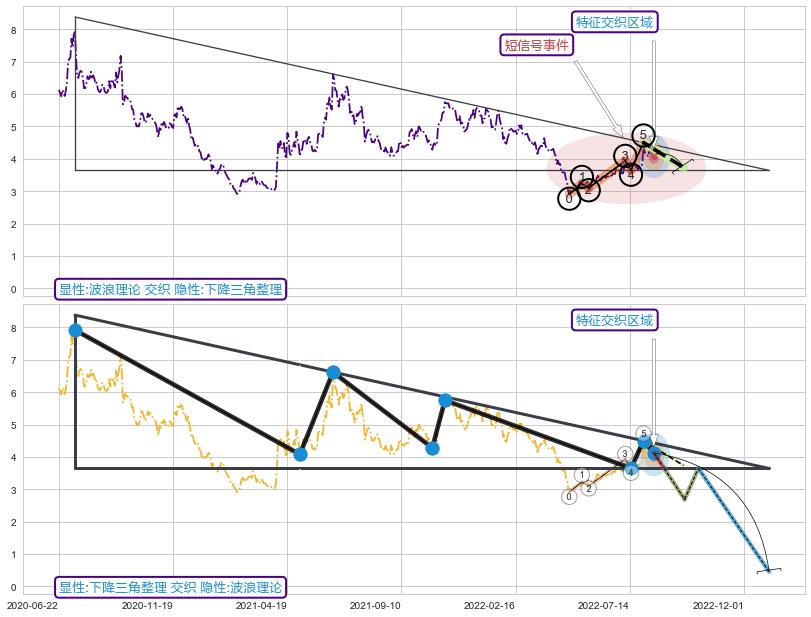 ➢ 波浪理论属【短级别信号事件】下降三角整理属【长级别信号事件】长短周期组合信号事件, 短长事件长度比14.76%