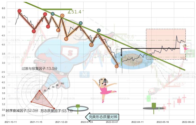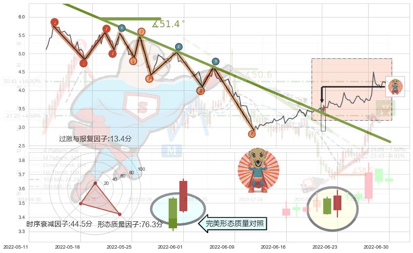 ➢ 2021-11-12-2022-05-20下跌趋势存在反转上涨[机会],其原下跌趋势的阻力位(2.600)已被突破[强支撑信号],原下跌趋势角度: 51.4˚