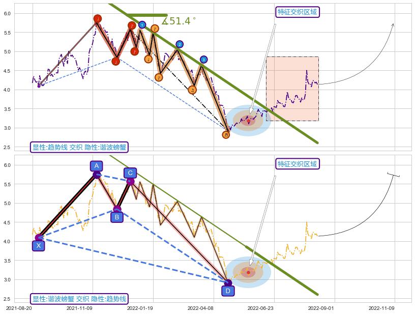 ➢ 已完成【螃蟹】形态起点X: 2021-08-27, 终点D: 2022-04-26, 共158交易日