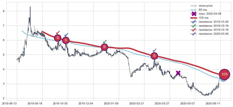 📝 多条均线形成死叉后走势最低价格达到: 0.200000