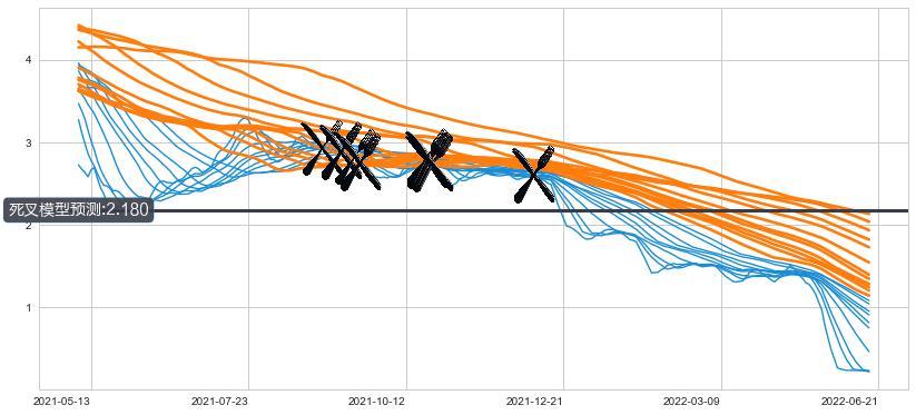 📉 多条均线基于【死叉历史模型】预测最低波谷价格的平均值: 2.180