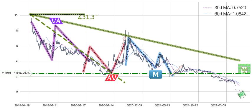 ♘ 阻力价格位2.388,可信任强度69.17%,距离最后交易2022-06-21形成的收盘价格0.200000相差 +1094.24%