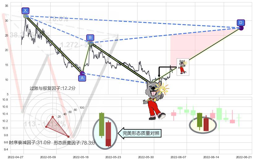 ➢ 曙光初现形态 🔜 谐波赛福下沉击穿c上涨拐点 综合量化分数:56.16 【偏多】