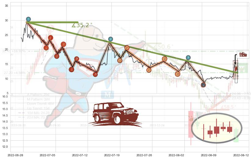 ♘ 阻力价格位20.46,可信任强度52.59%,距离最后交易2022-08-12形成的收盘价格12.35相差 +65.64%
