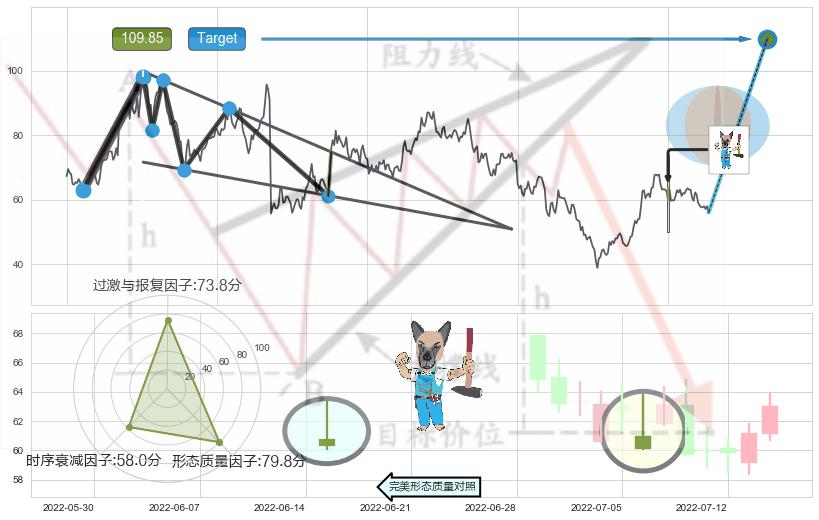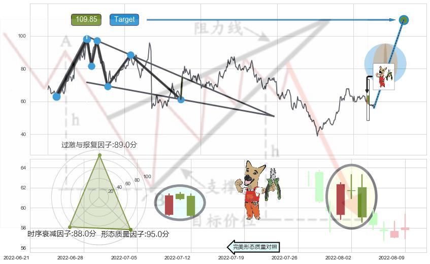♘ 阻力价格位86.79,可信任强度82.52%,距离最后交易2022-08-12形成的收盘价格56.10相差 +54.71%