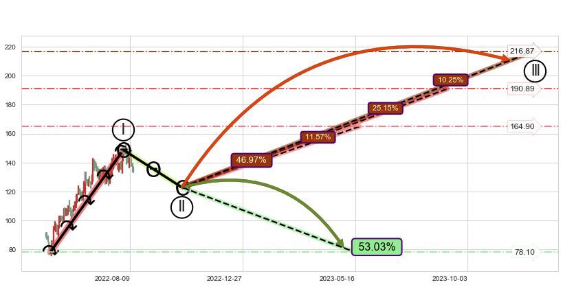 ♘ 阻力价格位152.77,可信任强度74.31%,距离最后交易2022-08-12形成的收盘价格134.25相差 +13.79%