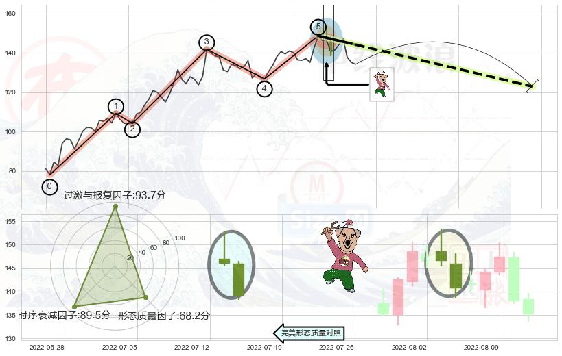 ➢ 射击之星形态 🔜 波浪理论上涨浪:浪5回调拐点 综合量化分数:40.87 【偏空】