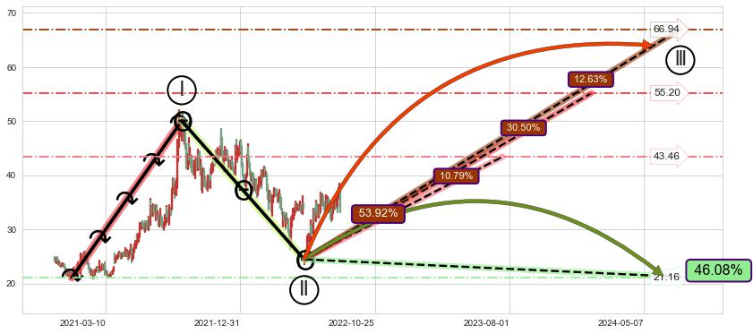 ♘ 支撑价格位20.56,可信任强度99.00%,距离最后交易2022-08-12形成的收盘价格33.54相差 -38.69%