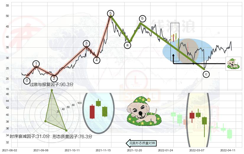 ➢ 下跌身怀六甲 🔜 波浪理论击穿破位C点继续下跌 综合量化分数:45.91 【偏空】