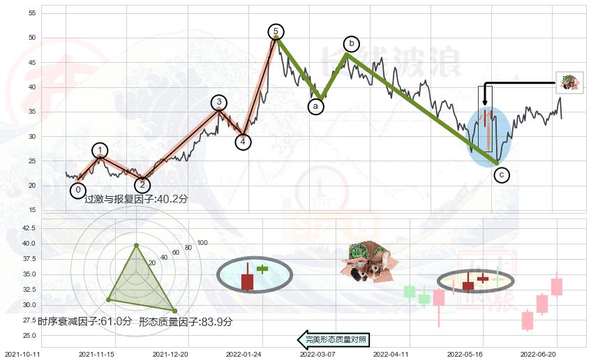 ➢ 黄昏之星(夜星) 🔜 波浪理论击穿破位C点继续下跌 综合量化分数:45.58 【偏空】