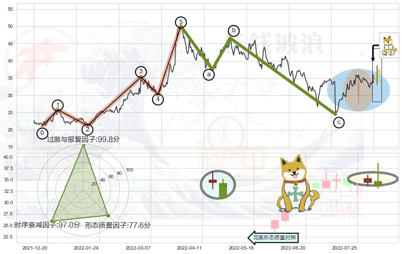 ➢ 看跌(高位倒锤头)流星线 🔜 波浪理论击穿破位C点继续下跌 综合量化分数:43.29 【偏空】