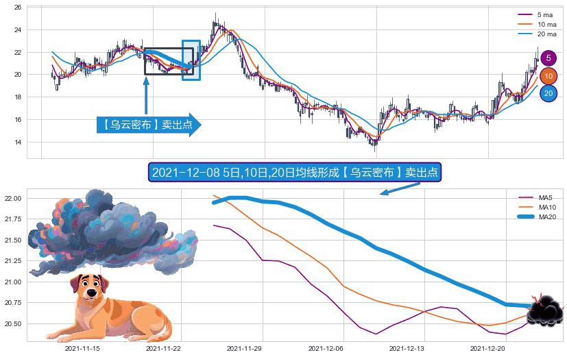 ⚀ 2021-11-24日-2021-12-22日显现 5日-10日-20日均线 【乌云密布】卖出点 看空信号,后市看跌,卖出
