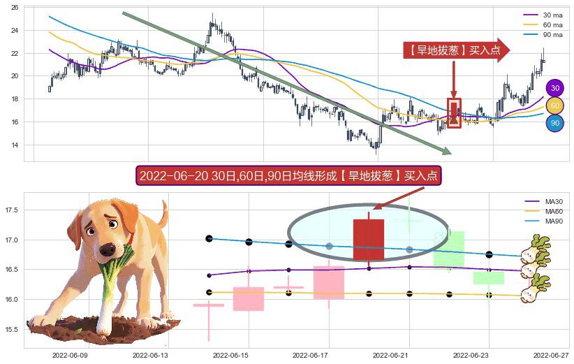 ⚀ 2022-06-20日显现 30日-60日-90日均线 【旱地拔葱】买入点 看多信号,后市看涨,买入