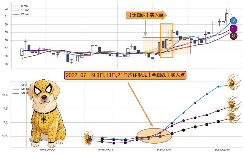 ⚀ 2022-07-19日显现 8日-13日-21日均线 【金蜘蛛】买入点 看多信号,后市看涨,买入
