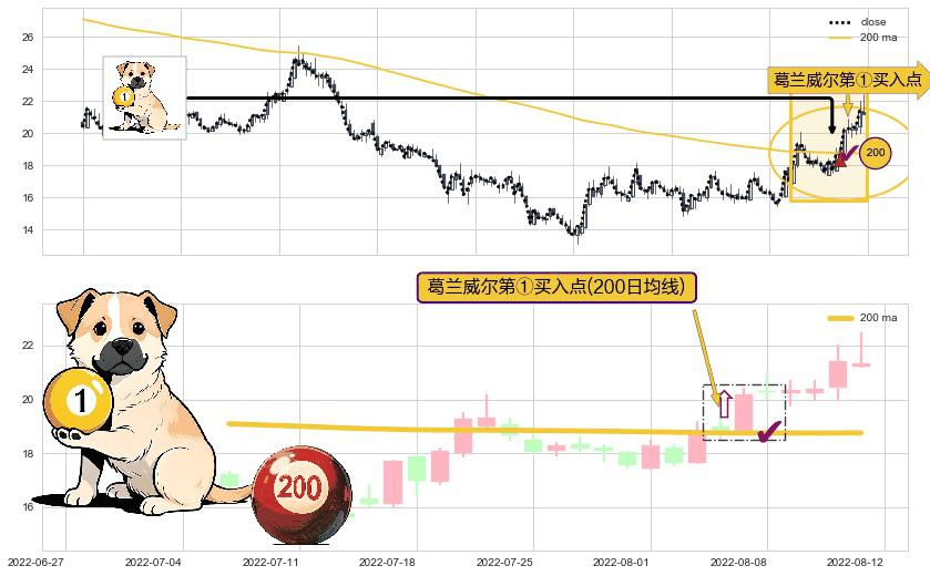 ⚀ 2022-08-04-日显现 葛兰威尔均线 200日均线 第买①入点 走势反转见底信号,后市看涨,买进信号