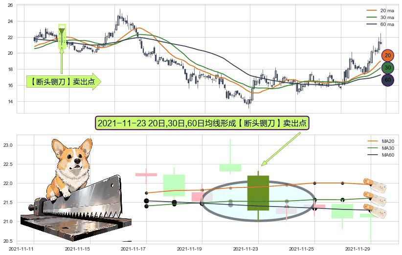 ⚀ 2021-11-23日显现 20日-30日-60日均线 【断头铡刀】卖出点 看空信号,后市看跌,卖出