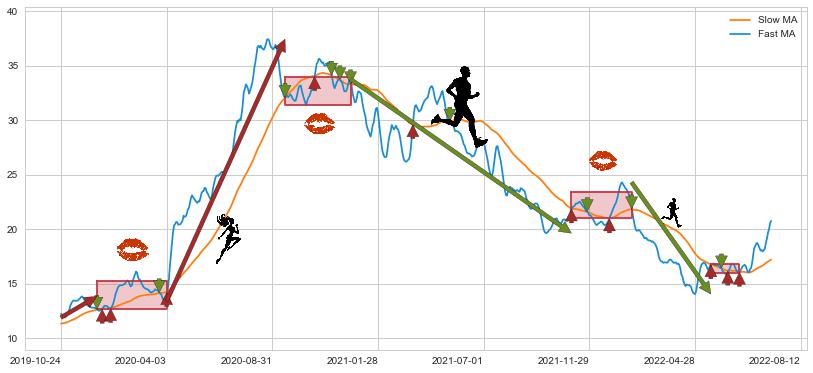 2022-01-25至2022-05-24 慢线与快线呈空头排列, 慢线与快线接触少,无缠绕
