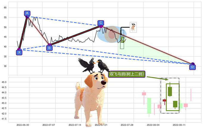 ➢ 双飞乌鸦(树上二鸦) 🔜 谐波蝴蝶c拐点下跌阻力 综合量化分数:47.69 【中性】
