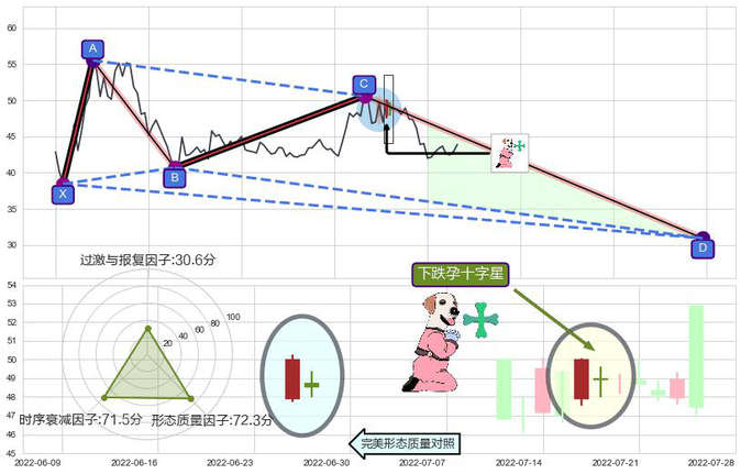 ➢ 下跌孕十字星 🔜 谐波蝴蝶c拐点下跌阻力 综合量化分数:42.16 【偏空】