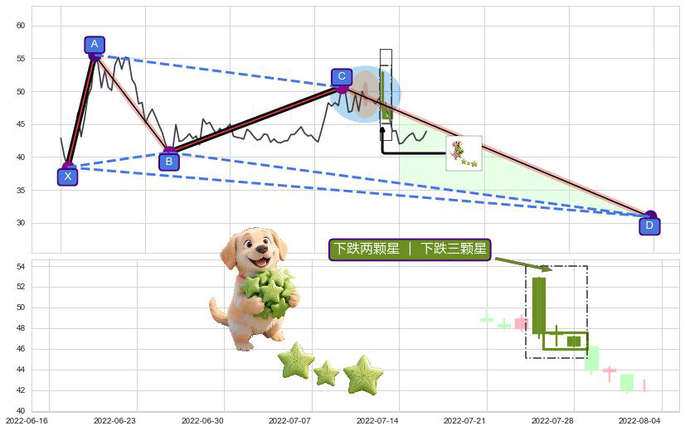 ➣ 已完成【蝙蝠】形态起点X: 2022-04-22, 终点D: 2022-08-02, 共69交易日