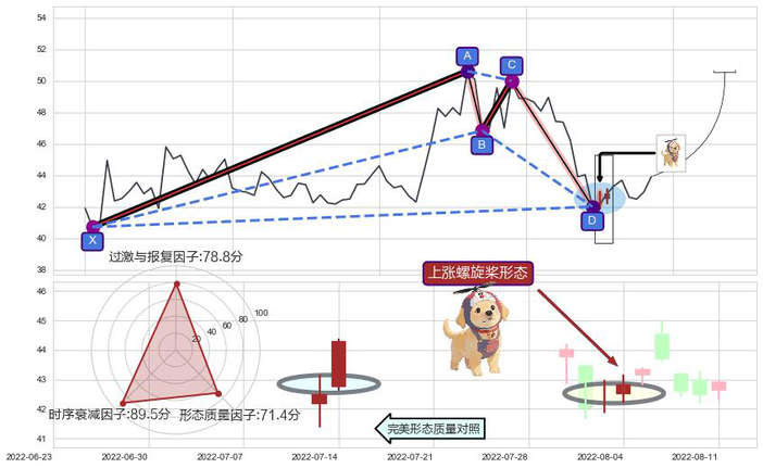 ➢ 🕰 价格走势在2022-08-03至2022-08-04期间形成上涨螺旋桨形态,残存影响值:7.31