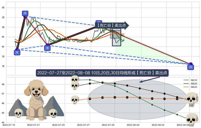 ➣ 🕰 价格走势在2022-07-28至2022-08-08期间形成【死亡谷】卖出点,残存影响值:-24.26