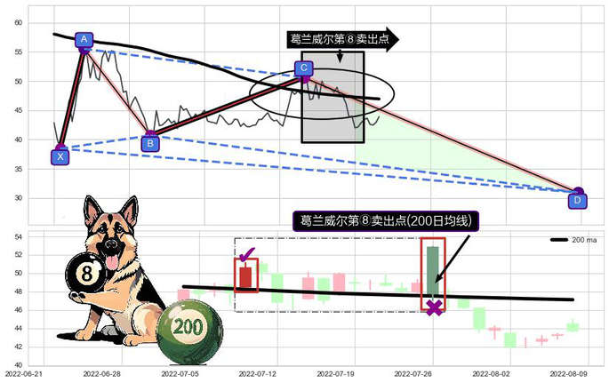 ➣ 🕰 价格走势在2022-07-08至2022-08-04期间形成葛兰威尔第⑧卖出点,残存影响值:-17.20