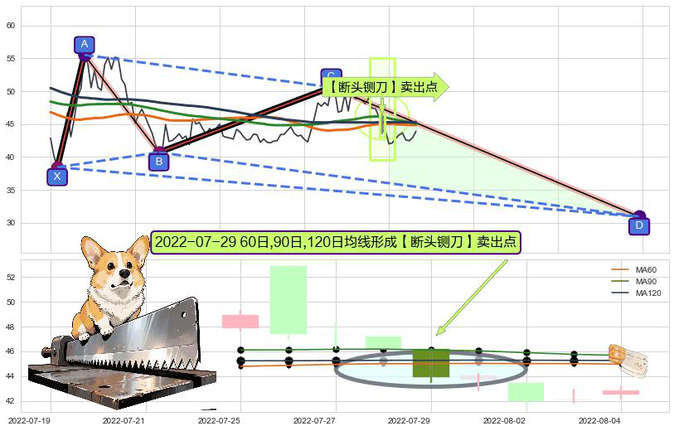 ➣ 🕰 价格走势在2022-07-26至2022-08-03期间形成【断头铡刀】卖出点,残存影响值:-38.87