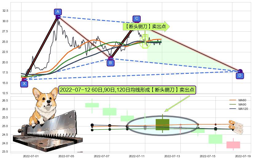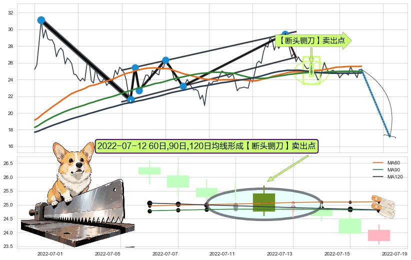 ➣ 🕰 价格走势在2022-07-07至2022-07-15期间形成【断头铡刀】卖出点,残存影响值:-30.67