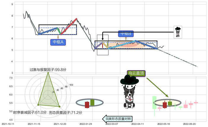 ➢ 乌云盖顶 🔜 缠论中枢点破位中枢B支撑下拉 综合量化分数:46.20 【偏空】