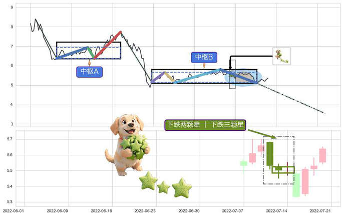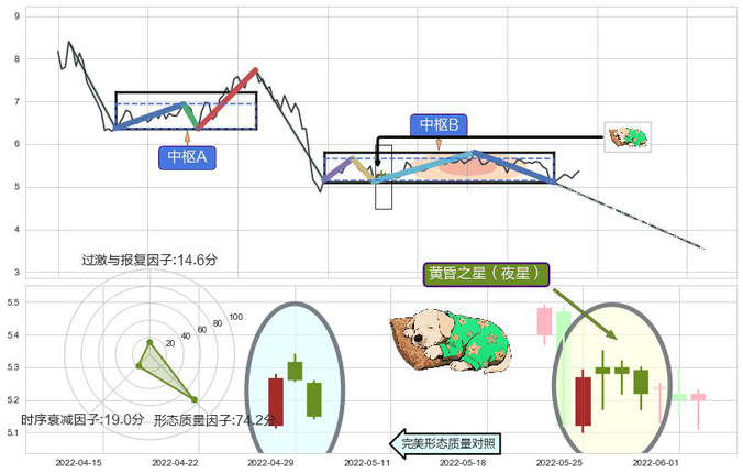 ➢ 黄昏之星(夜星) 🔜 缠论中枢点破位中枢B支撑下拉 综合量化分数:48.83 【中性】