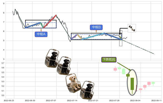 ➢ 缠论中枢点:猜想破位中枢B后持续下拉 → 下跌 → 破位中枢B支撑 → 持续趋势跟踪