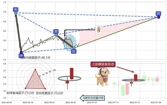 ➢ 🕰 价格走势在2022-07-19至2022-07-20期间形成上涨螺旋桨形态,残存影响值:5.76