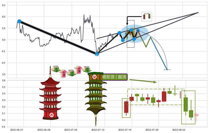 ➢ 🕰 价格走势在2022-07-18至2022-08-03期间形成塔形顶 | 圆顶,残存影响值:-9.19