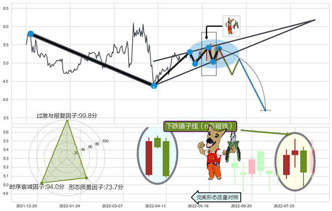 ➢ 🕰 价格走势在2022-07-18至2022-08-01期间形成下跌镊子线(n形磁铁),残存影响值:-1.70
