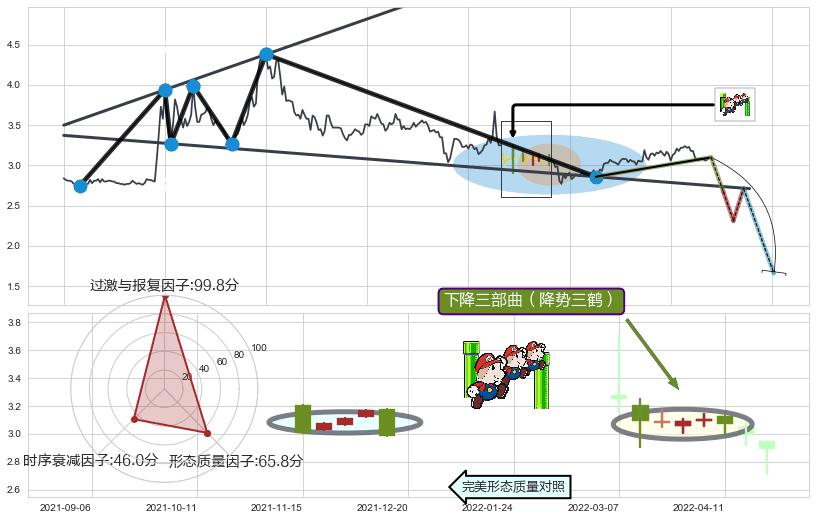 ➢ 🕰 价格走势在2022-03-14至2022-04-11期间形成下降三部曲(降势三鹤),残存影响值:-5.12