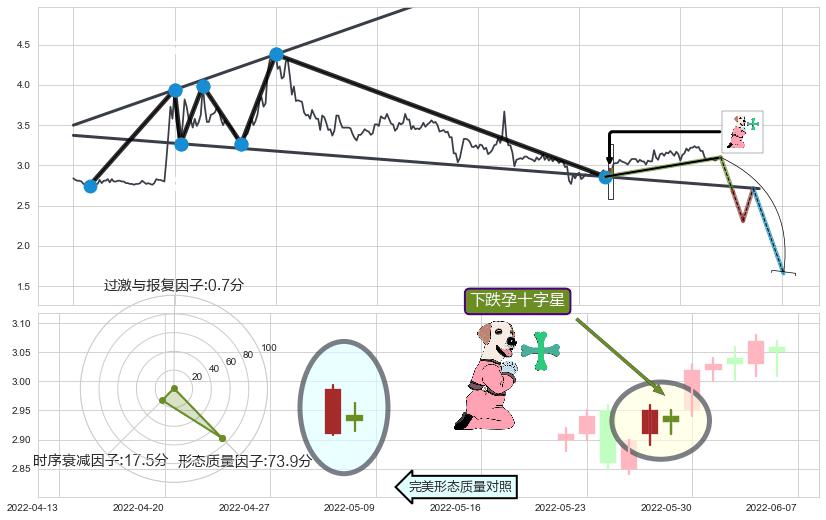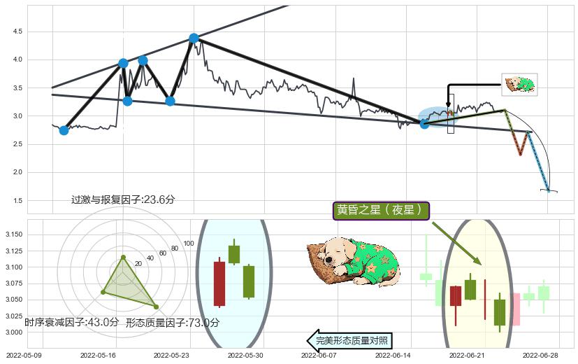 ➢ 🕰 价格走势在2022-06-17至2022-06-22期间形成黄昏之星(夜星),残存影响值:-3.47