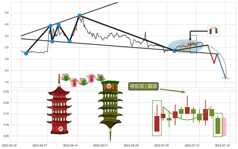 ➢ 🕰 价格走势在2022-07-01至2022-07-15期间形成塔形顶 | 圆顶,残存影响值:-7.42