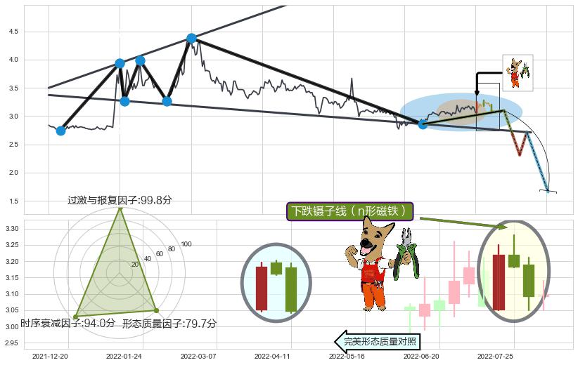 ➢ 🕰 价格走势在2022-07-18至2022-08-01期间形成下跌镊子线(n形磁铁),残存影响值:-1.77