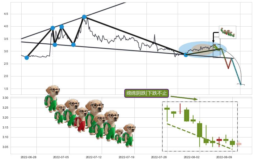 ➢ 🕰 价格走势在2022-07-26至2022-08-09期间形成绵绵阴跌|下跌不止,残存影响值:-9.59
