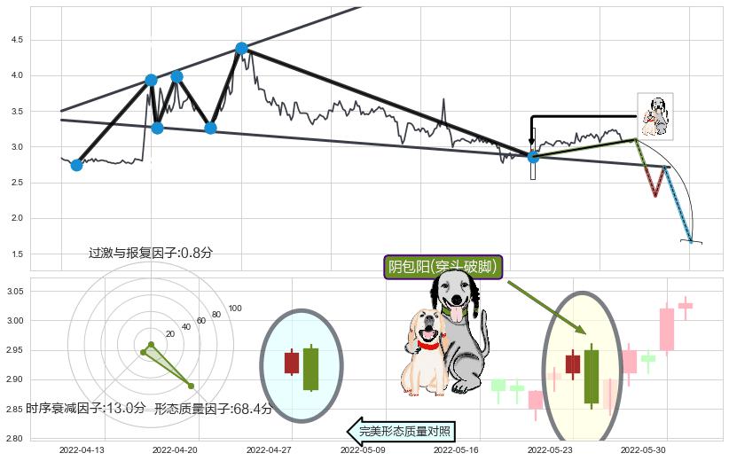 ➢ 阴包阳(穿头破脚) 🔜 扩散三角反转临近支撑猜想转换阻力下跌 综合量化分数:49.30 【中性】
