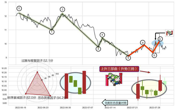 ➢ 🕰 价格走势在2022-07-21至2022-07-28期间形成上升三部曲(升势三鸦),残存影响值:3.68
